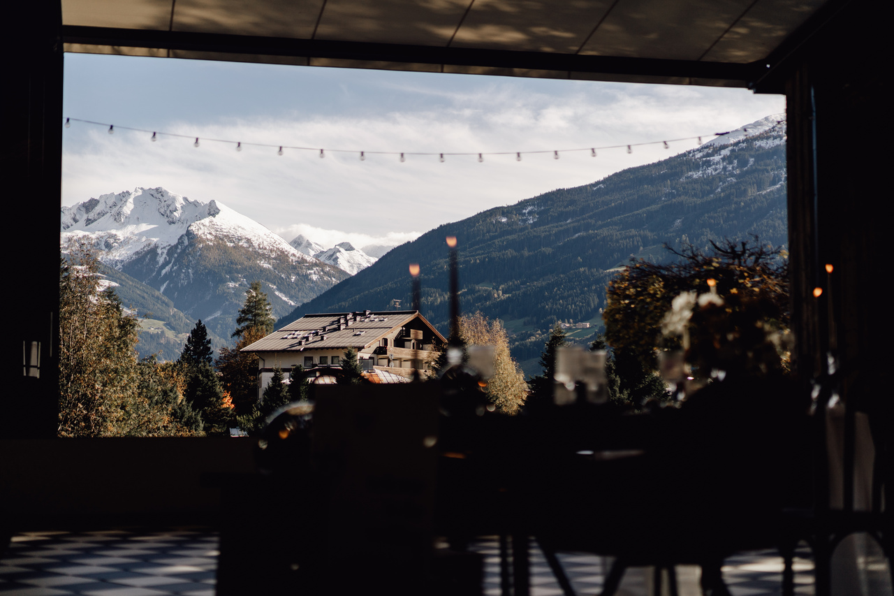 Das Sendlhofers ist eine außergewöhnliche Hochzeitslocation in Österreich – perfekt für eine Berghochzeit, die modern und individuell sein soll. Hier trifft moderner Stil auf eine alpine Kulisse, die jedem Raum eine besondere Magie verleiht. Der verglaste Wintergarten mit seinem schwarz-weiß gefliesten Boden und den schillernden Discokugeln schafft eine perfekte Mischung aus urbanem Flair und Disco-Feeling. Draußen rahmen Berge und Natur die Szene ein, während drinnen das lichtdurchflutete Design für eine einladende Atmosphäre sorgt.