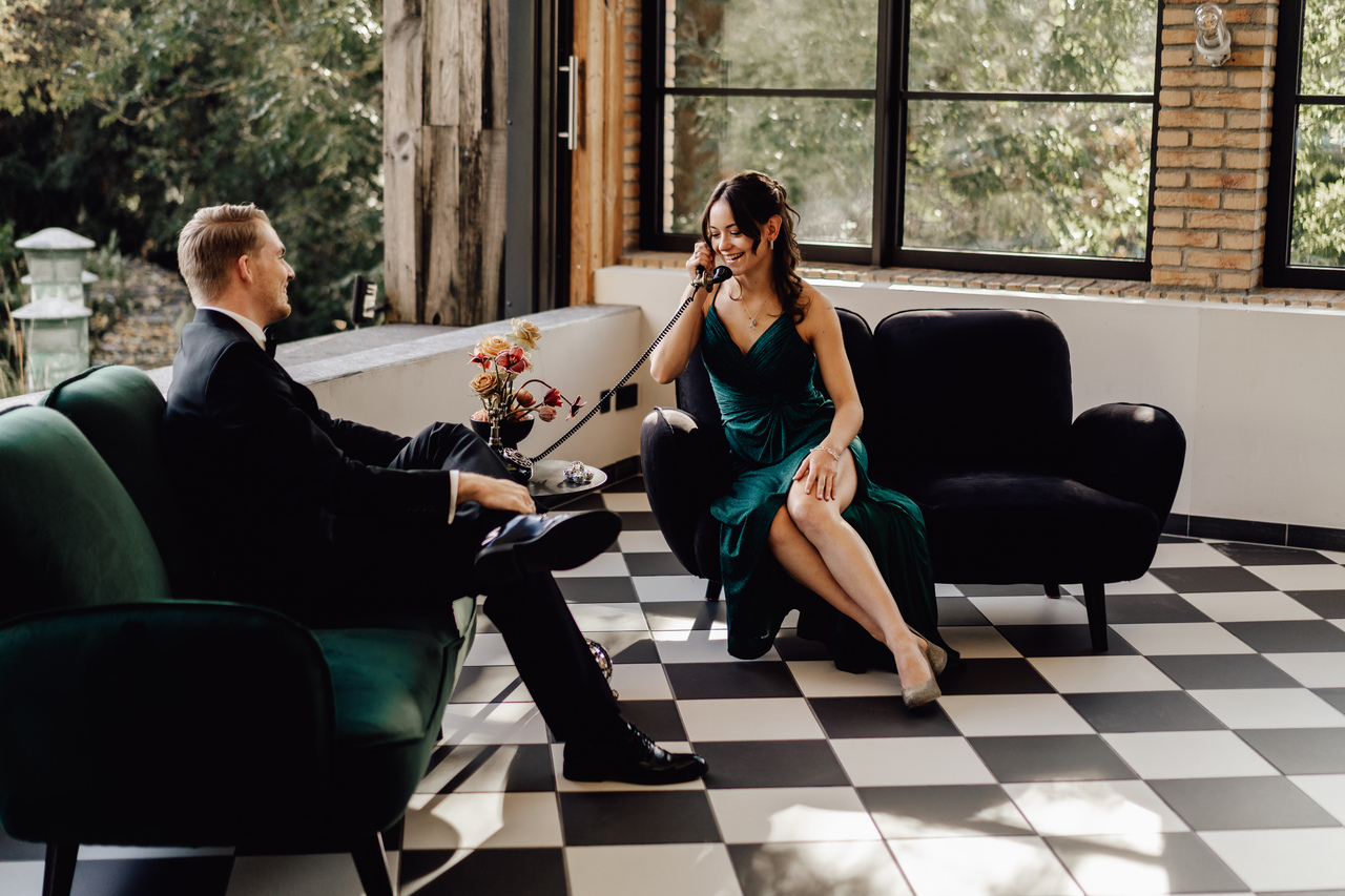 Der Bräutigam setzt mit seinem dunkelgrünen Anzug einen eleganten Akzent. Die edle Farbwahl und die raffinierten Details machen seinen Look besonders und setzen ihn perfekt in Szene. Ob beim gemeinsamen Anstoßen oder den ersten emotionalen Momenten mit euren Liebsten – dieser Start in den Tag bleibt unvergesslich.