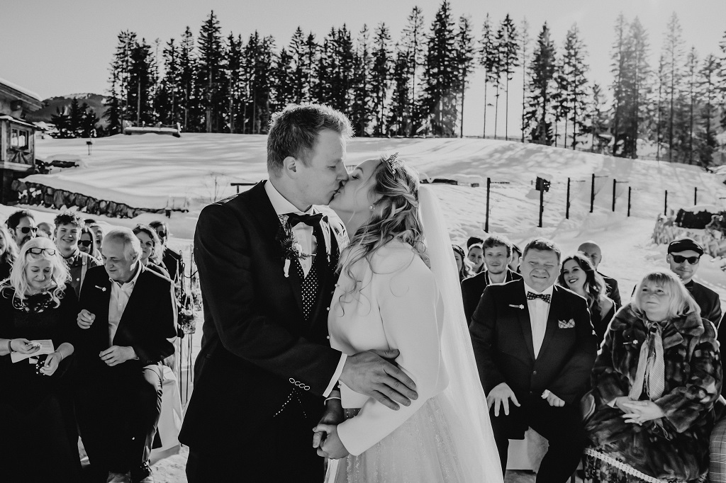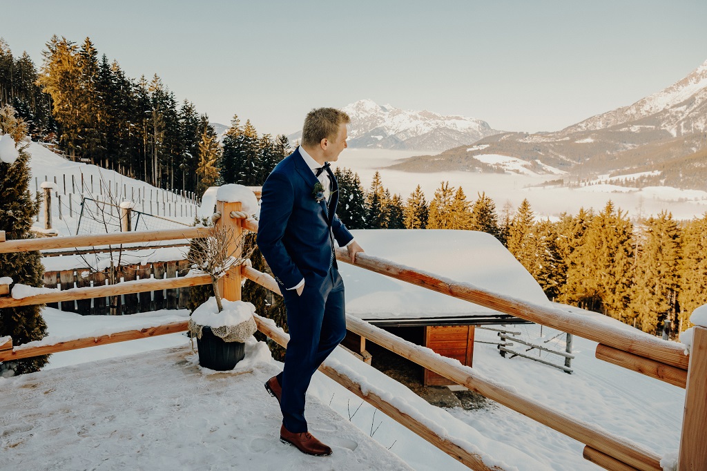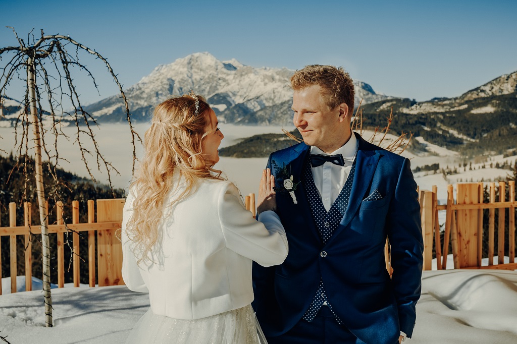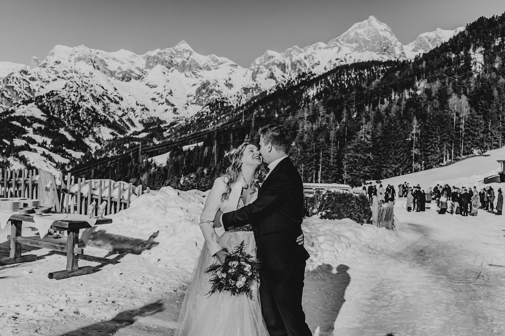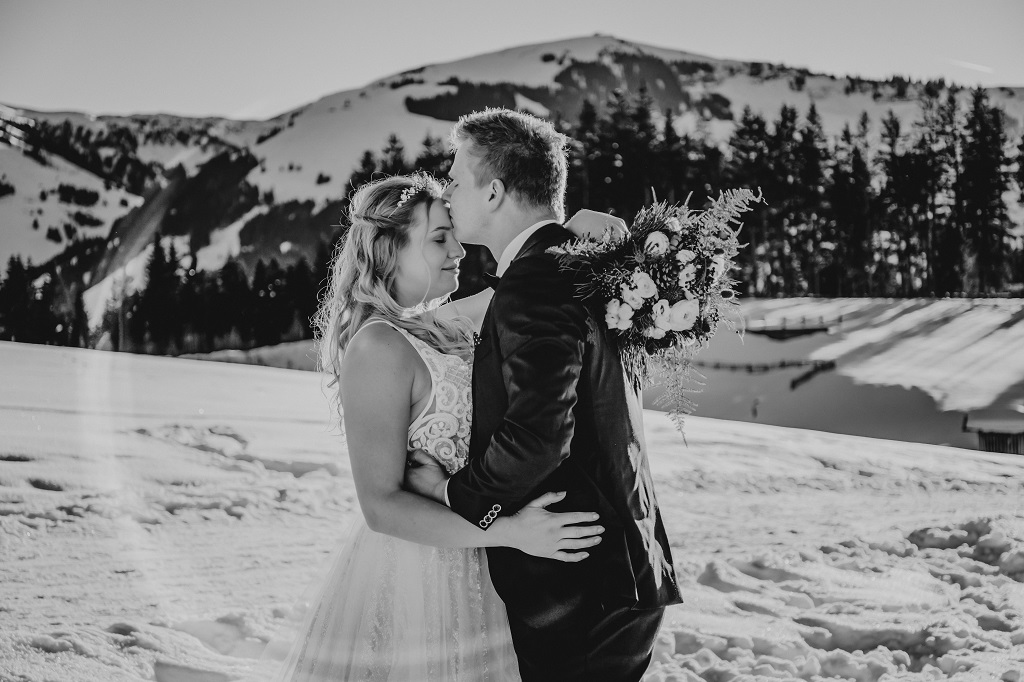 Winterhochzeit in den alpen österreichs